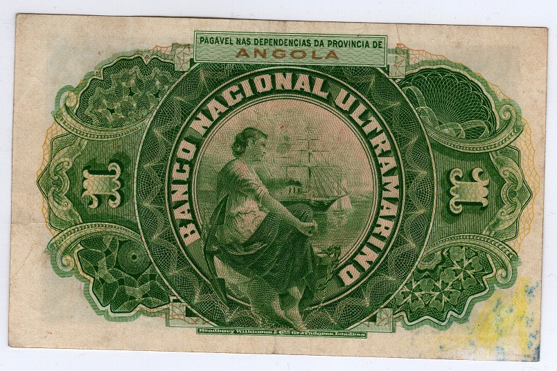 Central crease, blue stain on the back of the note.