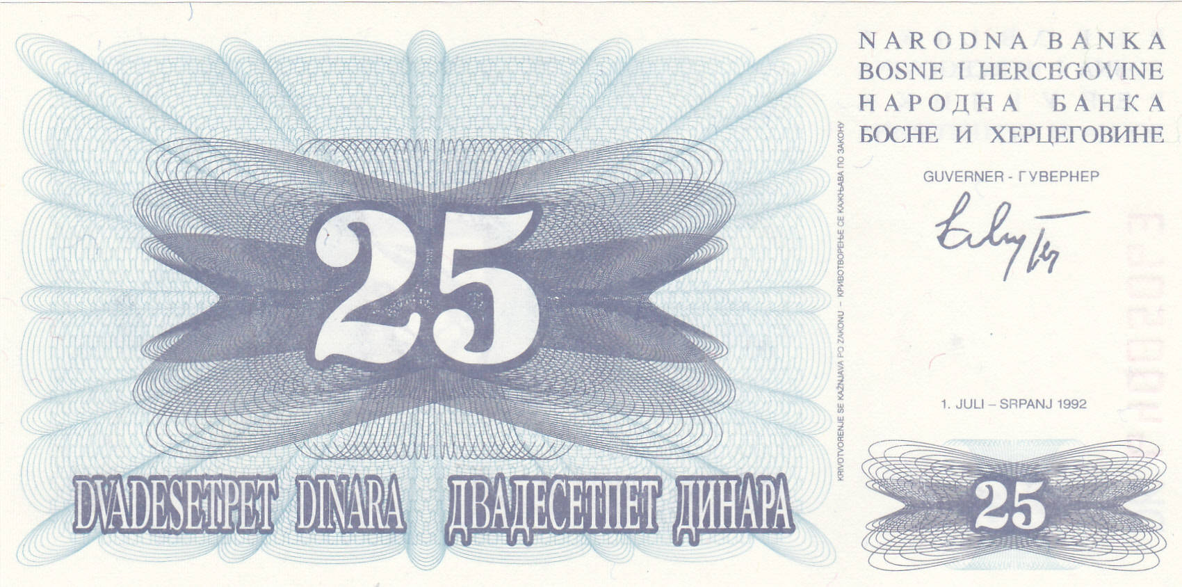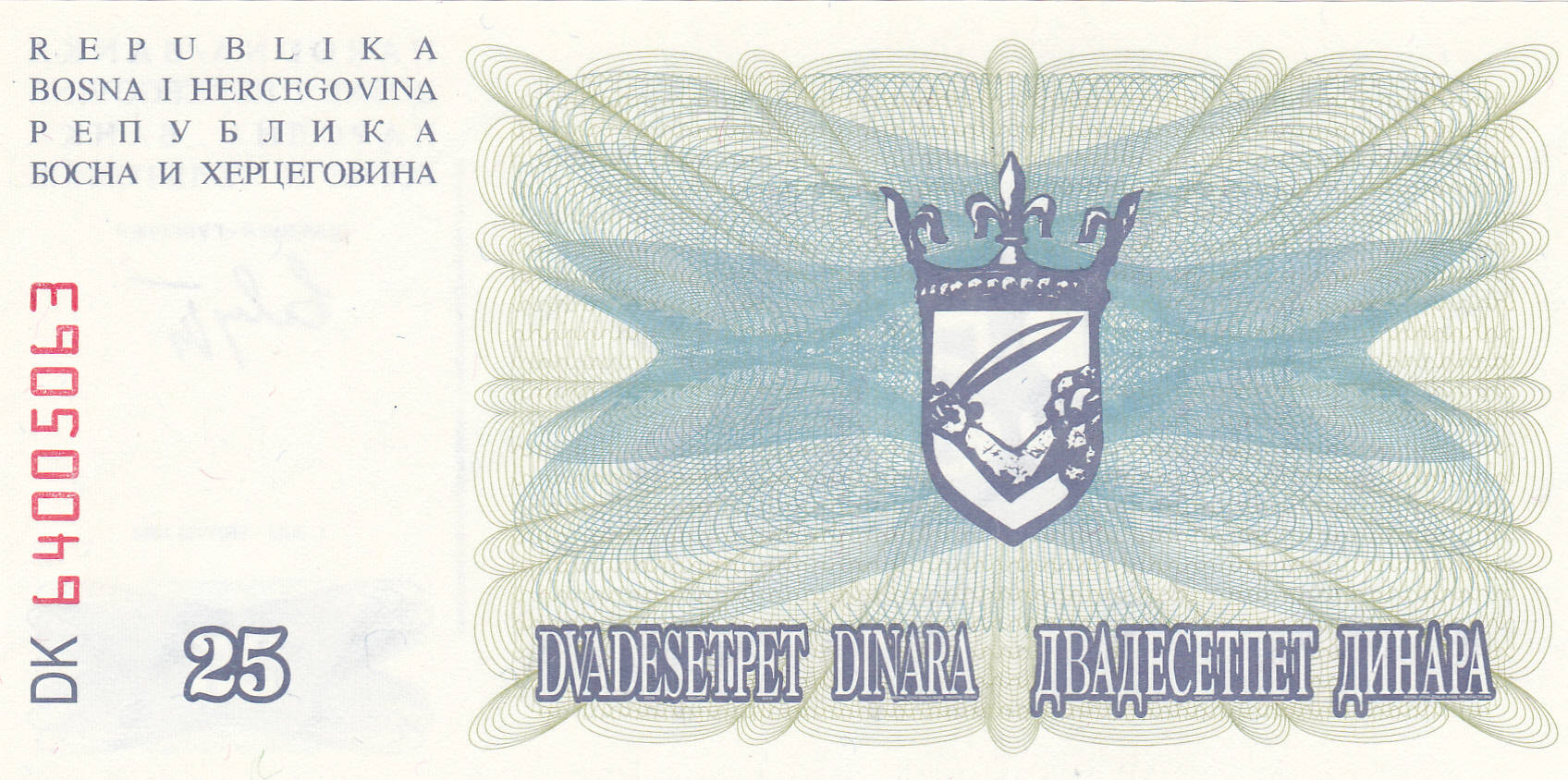 Bosnia 25 Dinara 1992