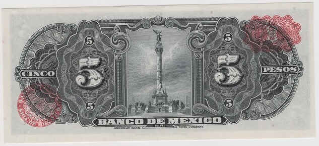 The 1969 Mexican 5 peso note has on its obverse the image “Ideal Head of an Algerian Girl” drawn by Robert Savage. On the reverse, the Monument to the Independence of Mexico stands out. This note was printed by the American Bank Note Company.