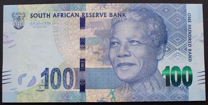 The South African 100 Rand note, issued in 2015, features Nelson Mandela in honor of his legacy. With a vibrant design, it symbolizes the fight for freedom and the hope of a better future for the country.