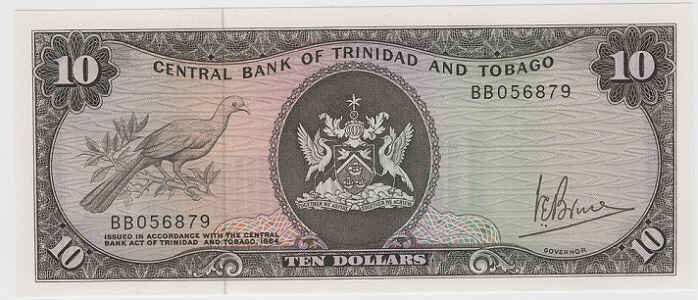 The Trinidad and Tobago $10 note, issued in 1964 (reprinted in 1977), features a classic and historic design. On the obverse, it displays the image of a national figure, while on the reverse, the country’s landscape and symbols stand out. Made on paper, the note reflects the cultural and economic heritage of Trinidad and Tobago.