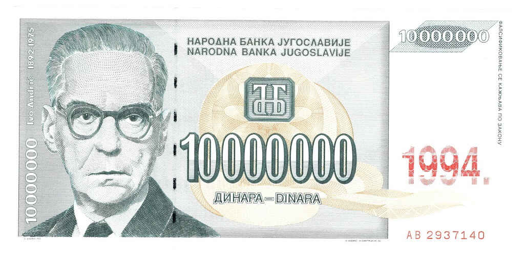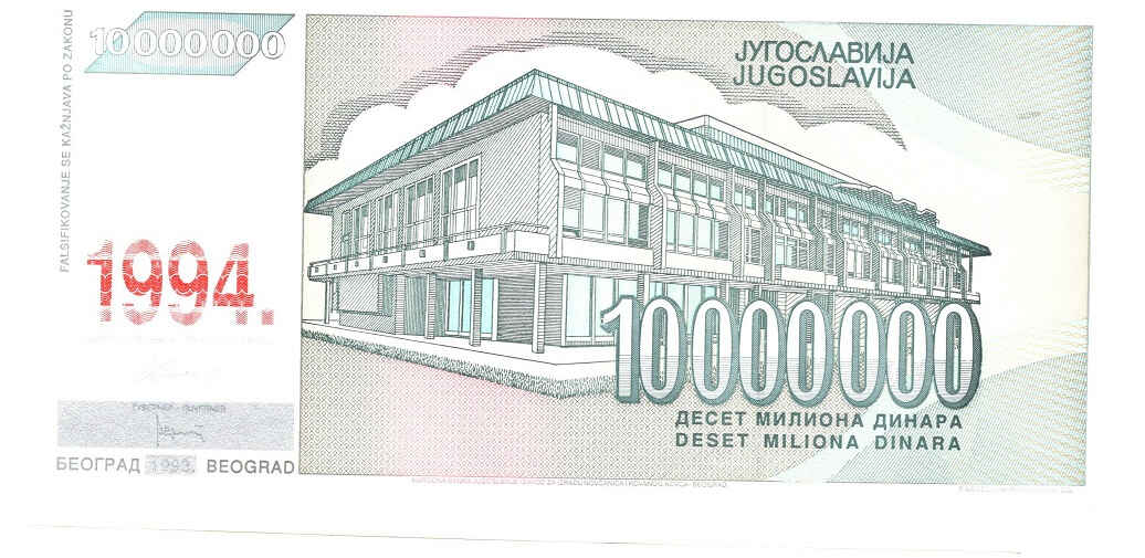 Yugoslavia 10.000.000 Dinara 1994
