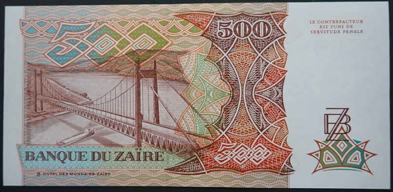 Zaire 500 Zaires 1989