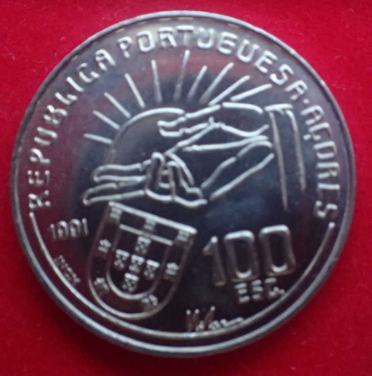 The 100 Azores Escudos coin, issued in 1991, pays homage to the poet, philosopher and thinker Antero de Quental, one of the most prominent figures in Portuguese culture and a native of the island of São Miguel, in the Azores. Part of a series of commemorative coins, this issue celebrates the centenary of the death of Antero de Quental (1842-1891), highlighting his crucial role in the intellectual and literary movement of the 19th century.