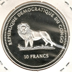 Congo 10 Francs 2003 Whale