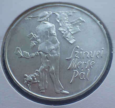 The 1976 Hungarian 200 forint coin is composed of 0.640 silver, weighs 28 g and is 37 mm in diameter. 25,000 copies were issued in BU quality and 5,000 in Proof. The coin pays homage to the painter Pál Szinyei Merse, featuring a scene from one of his paintings on the reverse.