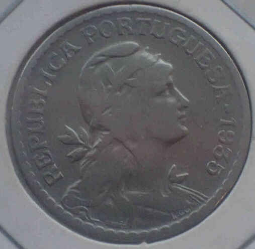 The Portuguese 1 escudo coin features the bust of the female Republic on the obverse, representing freedom and republican ideals. The reverse displays the value “1 Escudo” alongside graphic elements symbolizing the nation. Made of metal alloy, it is a historic piece that reflects the post-monarchist era in Portugal.