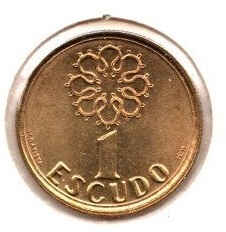 The 1 Escudo de Portugal coin features the Portuguese shield on the obverse, with five corners and seven crowns. On the reverse, there is the inscription “1 ESCUDO” and the year of issue.