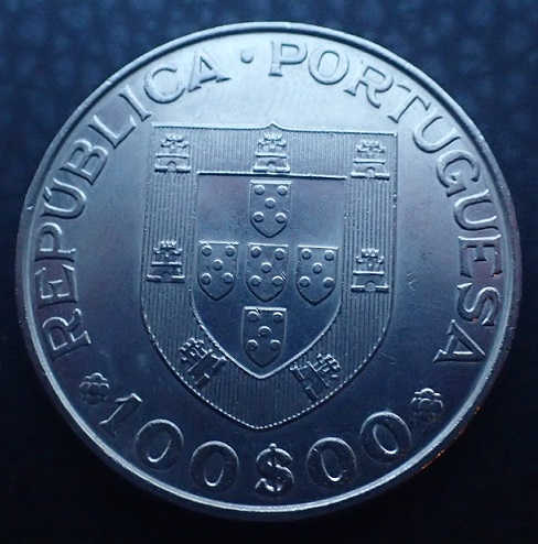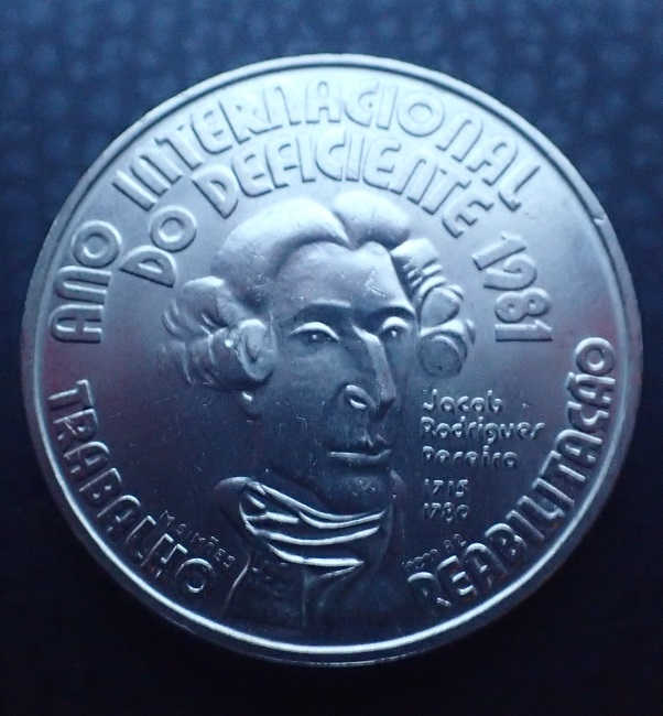 The 100 escudos coin of Portugal from 1984 is made of cupronickel, is 34 mm in diameter and weighs 17 g, with an issue of 1,000,000 copies. Celebrates the International Year of Disabled People, highlighting the inclusion and rights of people with disabilities.