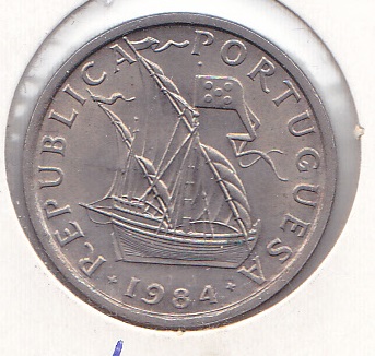 Portugal’s 5 escudo coin is made of cupronickel. On the obverse, it displays the national shield, while the reverse features a caravel, symbolizing the Portuguese Discoveries and the maritime era that marked the country’s history..