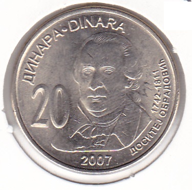 Serbia 20 Dinara 2007 Dositej Obradovic