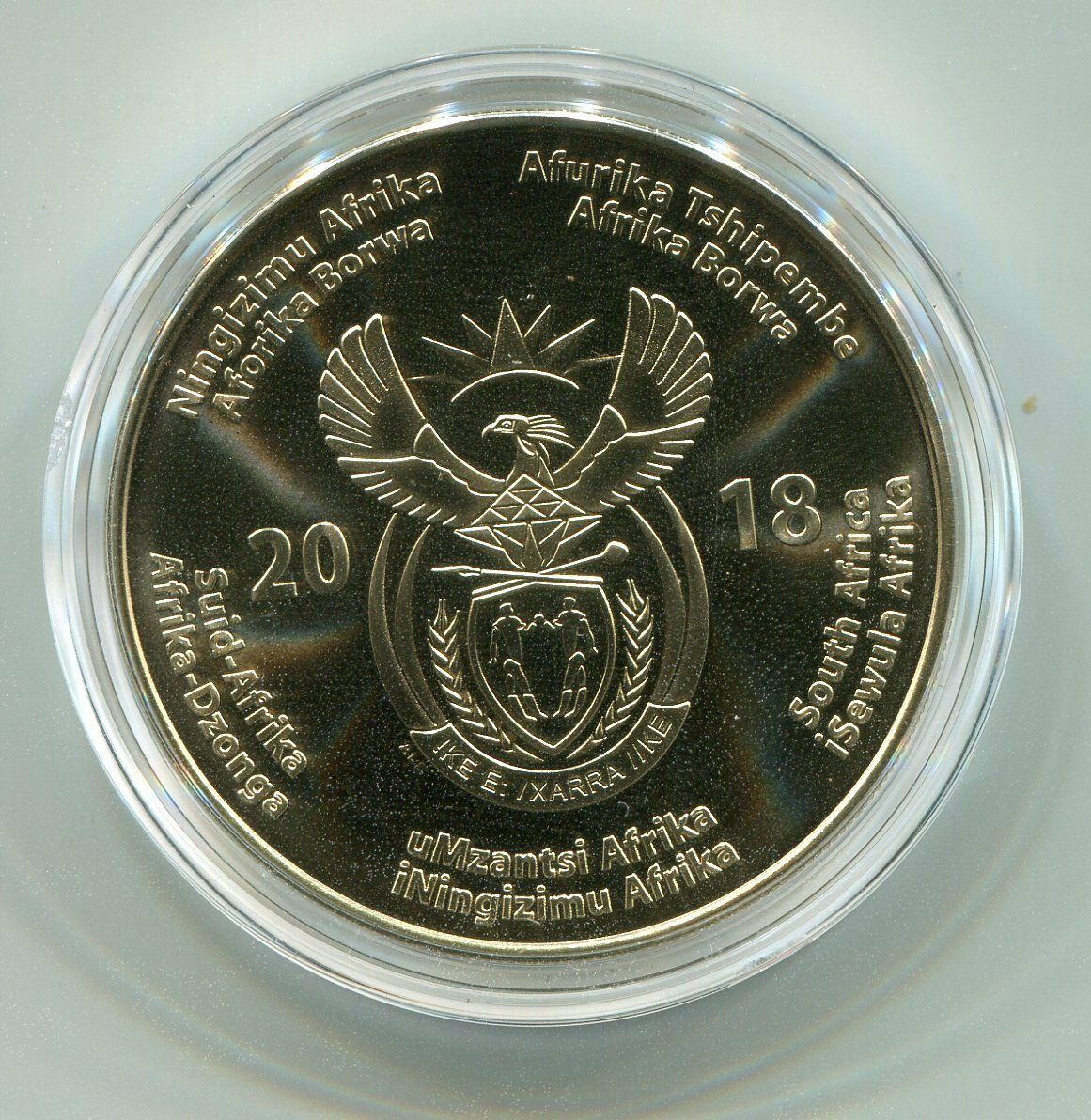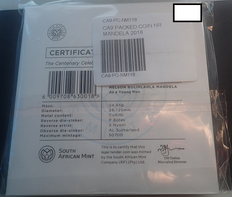 The South African 50 Rand coin, issued in 2018 in honor of Nelson Mandela, has a diameter of 38 mm and a weight of 33 g. Comes with blister pack, highlighting the importance of the leader in the country’s history.