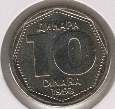 Yugoslavia 10 Dinara 1993