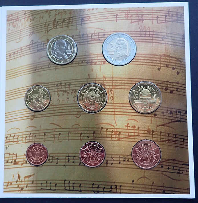 The Austria Set BNC 2003 is an official collection that includes Austrian euro coins from 2003, from 1 cent to 2 euros, all in BNC (Brilliant Uncirculated) quality.