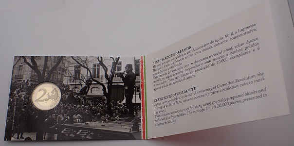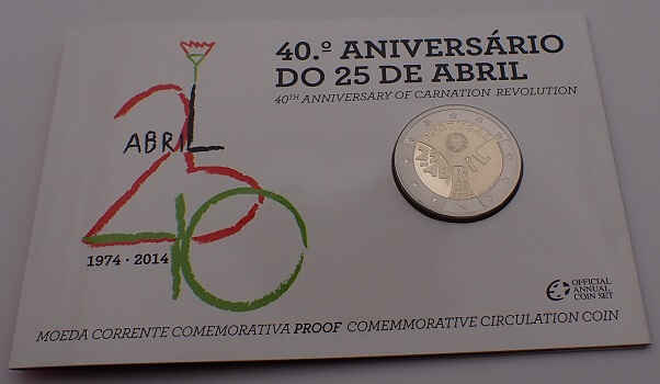 Portugal’s 2-euro coin of 2014 marks the 40th anniversary of the April 25th Revolution. Presented in Proof form, it symbolizes freedom, democracy, and this historic milestone in contemporary Portuguese history. Mintage: 10,000 units.