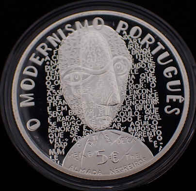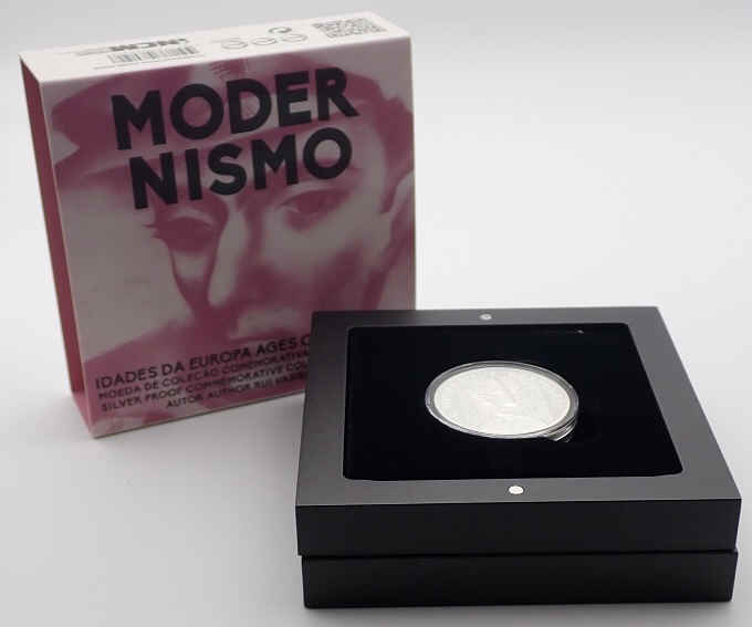 The 5 euro “Portuguese Modernism” coin, issued in 2016, celebrates the impact of modernism on Portuguese art and culture, paying homage to movements and figures that marked the beginning of the 20th century. Made in 925 silver (proof), it is limited to 7,500 pieces. On the obverse, it highlights elements alluding to modernism, while the reverse includes details representative of the artistic movement, along with the face value and national elements.