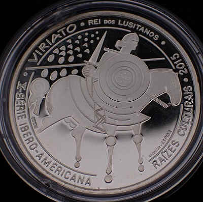 The €7.50 collector coin dedicated to Viriato was issued in 2015 as part of the “Heroes of the History of Portugal” series. Made in silver with a proof finish, it highlights the figure of the legendary Lusitanian leader, a symbol of resistance against the Roman Empire. The print run was limited to 5000 units, reinforcing its numismatic value.