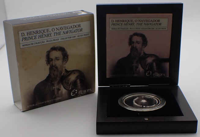 The Portugal 8 Euro 2006 – D. Henrique commemorative coin, issued in proof finish, celebrates Infante D. Henrique, a central figure of the Portuguese Discoveries. It is minted in 925 silver, weighs 28g and has a diameter of 40mm. The maximum circulation was 15,000 copies. This broadcast is part of the series dedicated to the great figures in the History of Portugal, highlighting the role of Infante in the maritime and cultural expansion of Portugal.