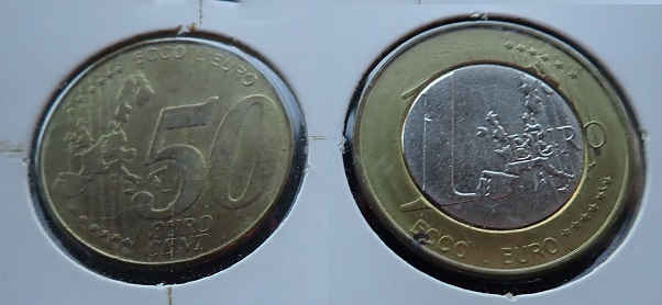 Small stain on the back of the 1 euro coin.